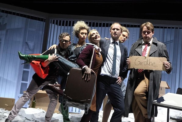 "Ein großer, absurder Spaß findet statt auf einem Aktengebirge, also einem riesen Haufen Papier [...]. Brey benutzt wirklich alles, was so im Werkzeugkasten der theatralischen Komik oder Kleinkunst-Komik zu finden ist. [...] Das ganze Ensemble am Schauspiel Frankfurt ist an diesem Abend glänzend aufgelegt. Ein wirklich klasse Abend, an dem man über all das lachen kann, worüber man sich sonst, natürlich mit Recht, empört."