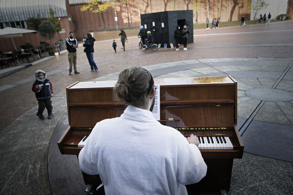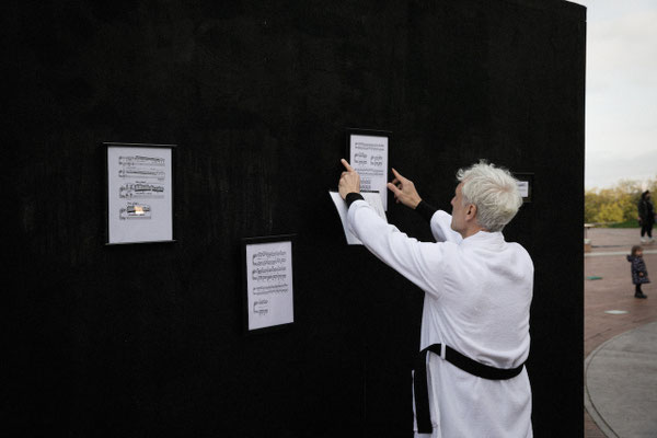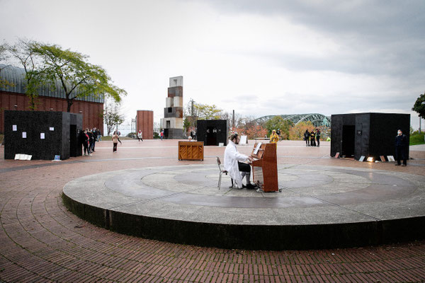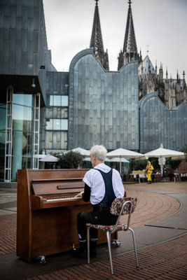 Zwischen Kölner Dom und Museum Ludwig, dem Rauschen der Bahngleise und dem Menschenstrom des Kölner Alltages entsteht über der unterirdisch gelegenen Philharmonie, auf dem Vorplatz des Konzerthauses ein Klavierkonzert im öffentlichen Raum. Patrik Baboumian, der stärkste Mann Deutschlands, sowie der Tänzer Rafal Dziemidok betrachten als Beethovens Stellvertreter und Rückblende ihr eigenes Werk und sortieren den Kompositionszyklus für die beiden Pianisten Antonis Anissegos und Joseph Houston in einen fragmentierten Ritt durch Beethovens Klavierwerk. Begehbare Kuben sind Schlupflöcher für die Zuschauer, die in der vierstündigen Performance (coronabedingt) einzeln, exklusiv und zeitlich begrenzt Zutritt erhalten.