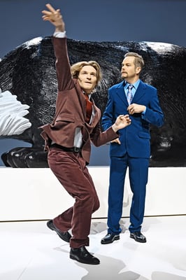 «Ein ehrgeiziger Lügner und ein scheinnaiver Boomer: die perfekte Kombi für eine Unternehmensgründung. Vom Start-up wird der Zahlungsdienstleister Wirecard zum Global Player – und zu einem der größten Finanzskandale ever. David Gieselmann und Christian Brey überführen die Story in ein Schauspielspektakel mit Musicaltouch.» (Nachtkritik)